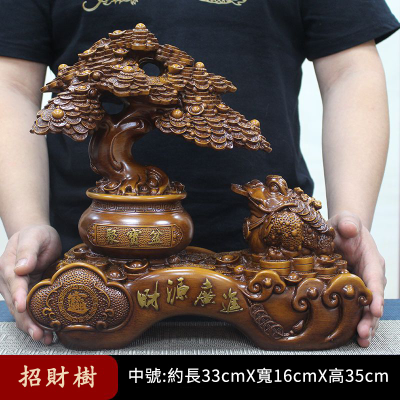這尊鎮宅招財擺件,取材於天然實木