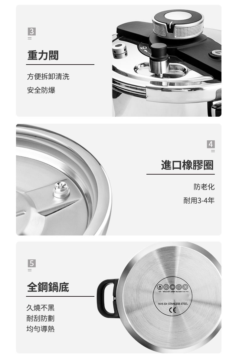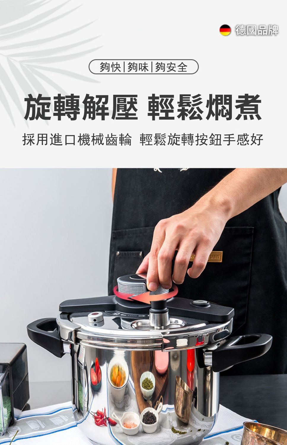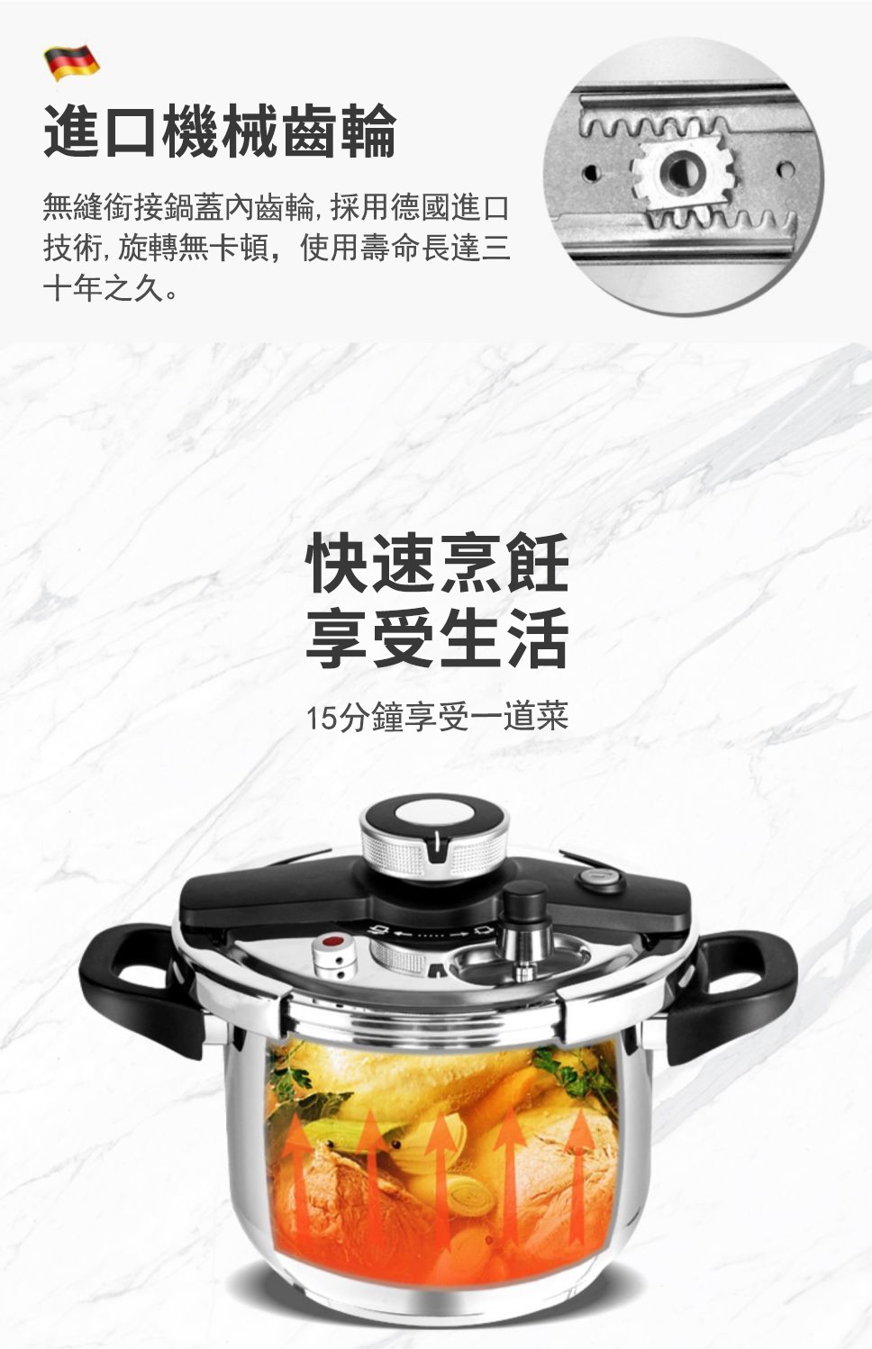 20分鐘前【2025年開春季】燃氣電磁爐通用【德國進口】304不鏽鋼壓力鍋 煮飯/熬粥/炖肉 自動限壓閥排氣保護安全防爆 耐用20年不壞 不滿意包退換 - 升級版八重保護304不鏽鋼重力閥6L強力壓力鍋(3-6人)