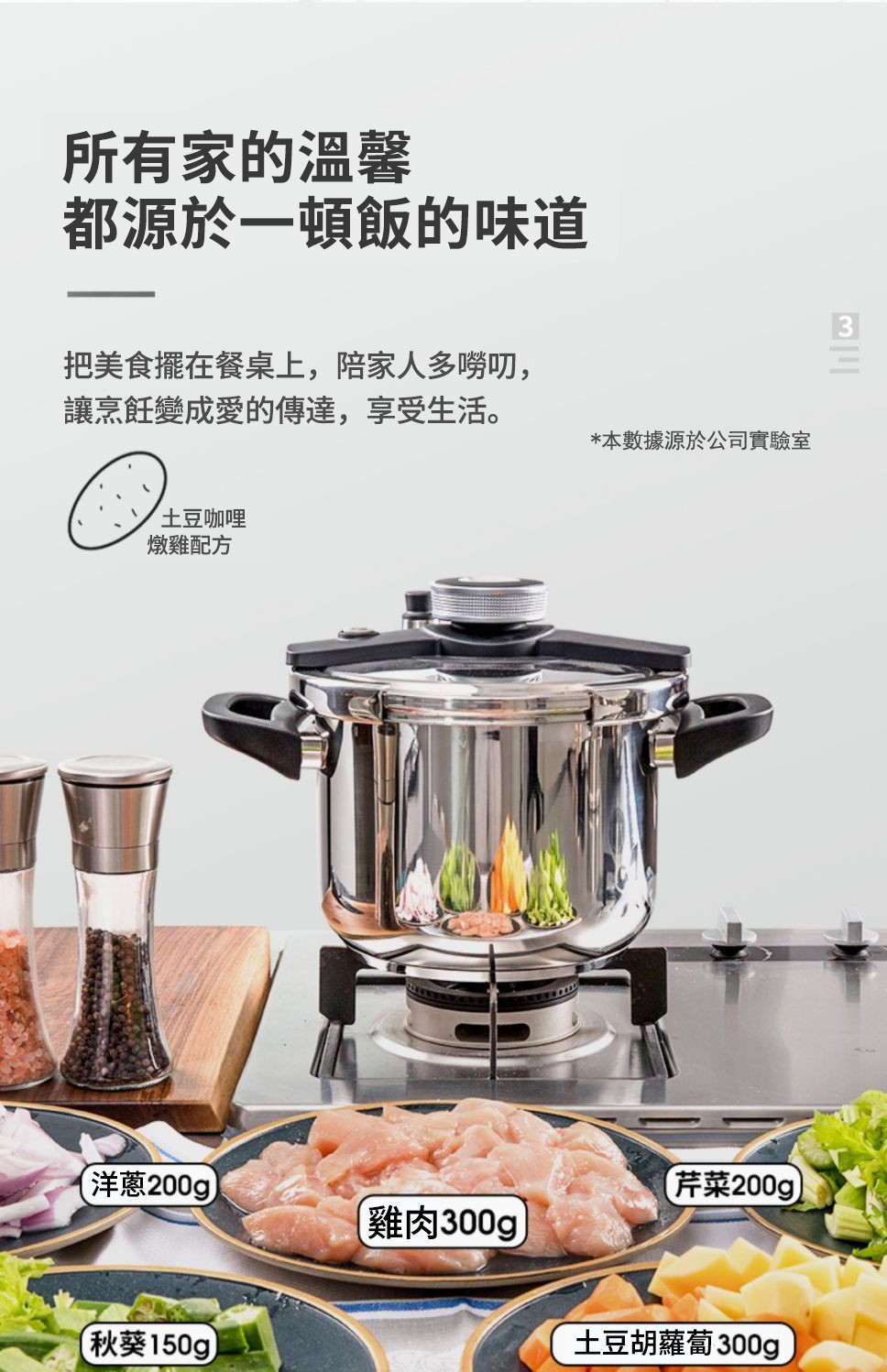 半小時前【2025年開春季】燃氣電磁爐通用【德國進口】304不鏽鋼壓力鍋 煮飯/熬粥/炖肉 自動限壓閥排氣保護安全防爆 耐用20年不壞 不滿意包退換 - 升級版八重保護304不鏽鋼重力閥6L強力壓力鍋(3-6人)