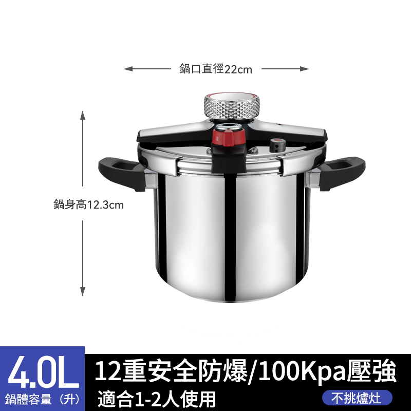 11分鐘前【2025年開春季】燃氣電磁爐通用【德國進口】304不鏽鋼壓力鍋 煮飯/熬粥/炖肉 自動限壓閥排氣保護安全防爆 耐用20年不壞 不滿意包退換 - 升級版八重保護304不鏽鋼重力閥4L強力壓力鍋(1-2人)