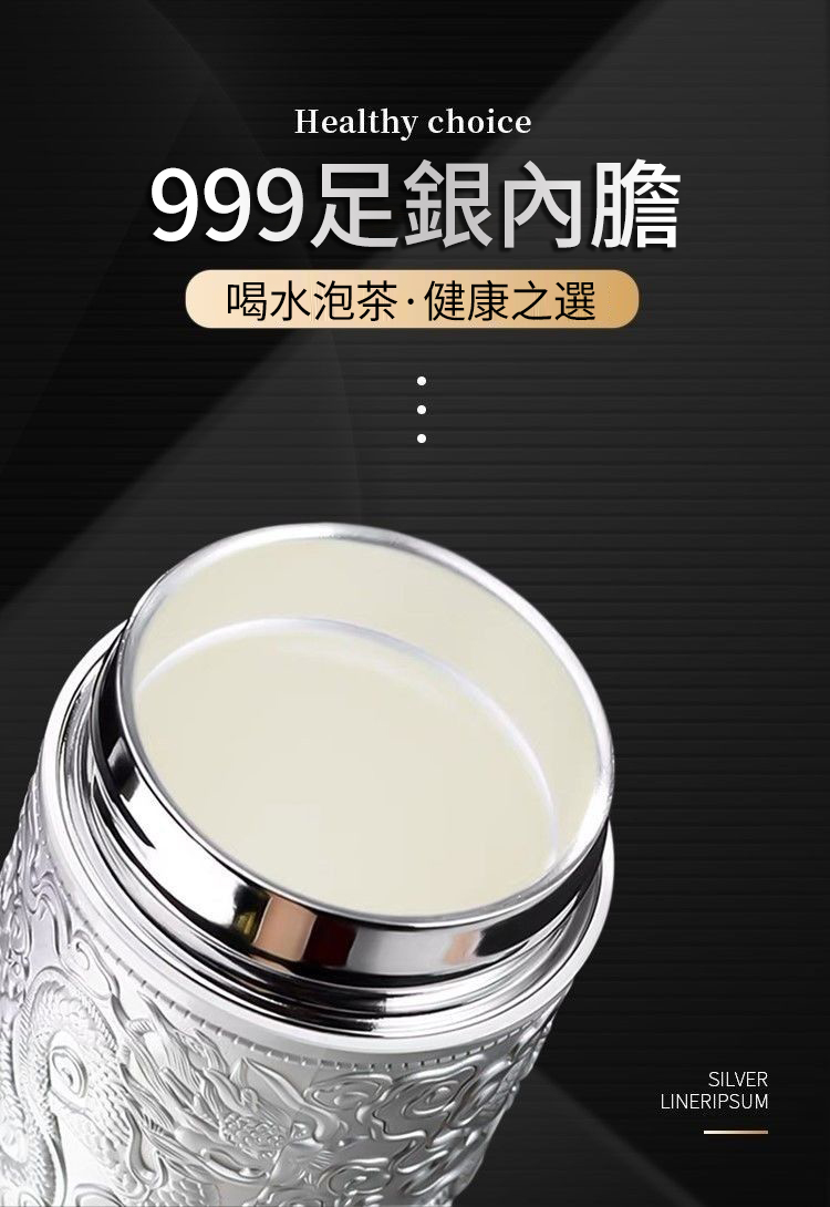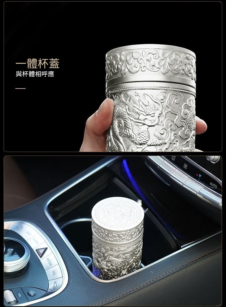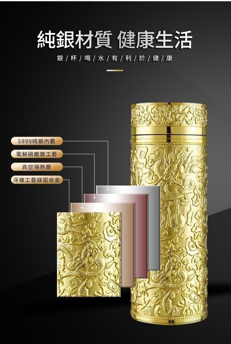 999足銀內膽 純手工浮雕設計 九龍纏繞杯身