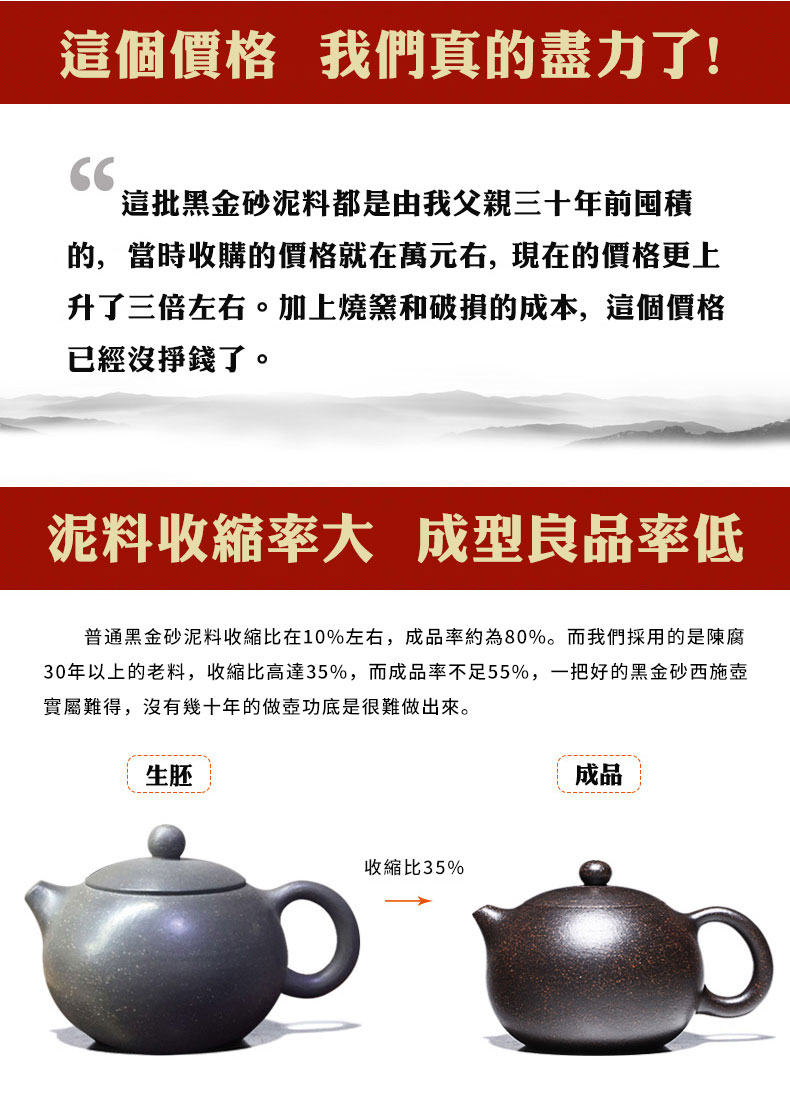 15分鐘前全手工紫砂壺 家藏三十年黑金沙原礦老料 大容量球孔西施壺 - 200CC黃金容量NTS1550