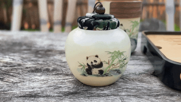 紋飾生動、栩栩如生的國寶熊貓戲竹圖案,更是為品茗增添一分趣味。