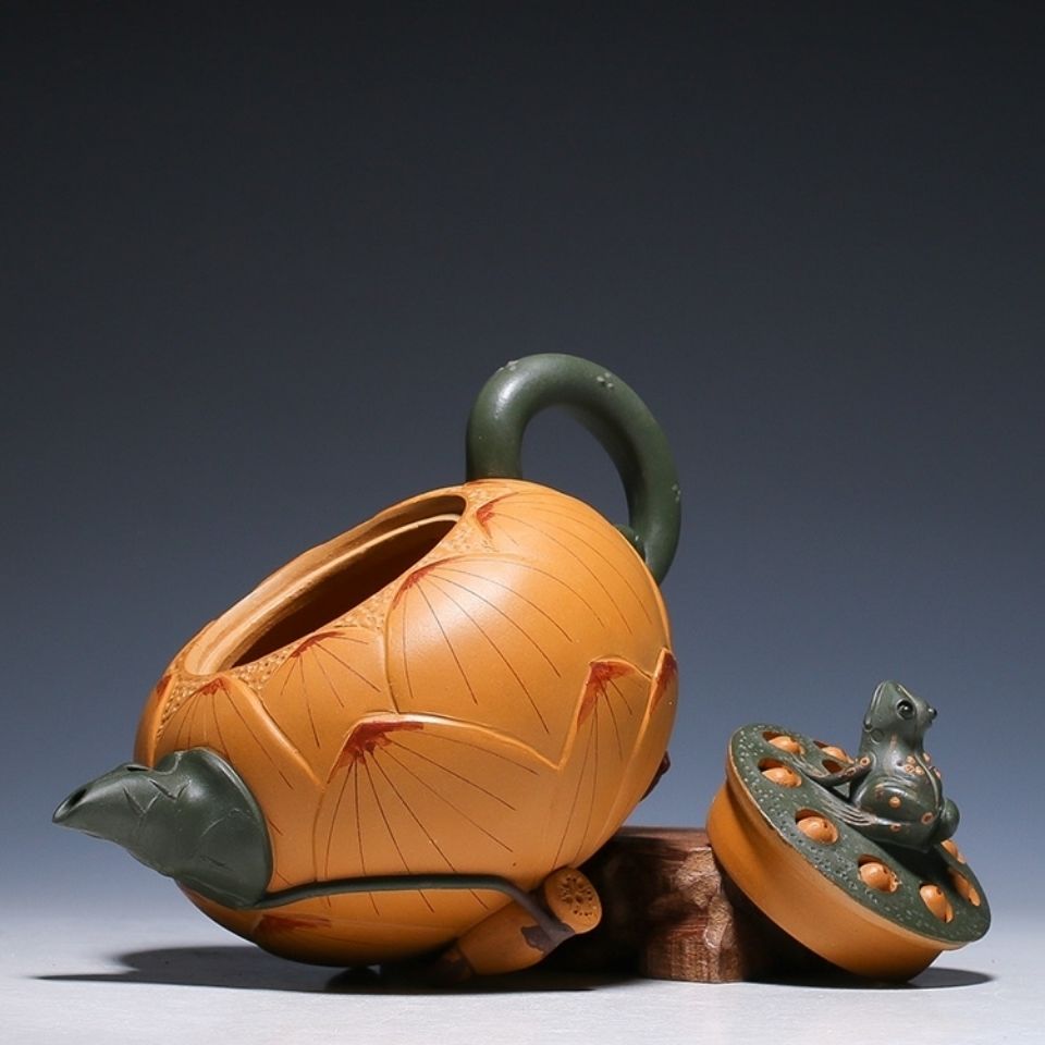 原礦陳腐老料|紫砂黃金段泥蓮蓬壺 • 珍貴窖藏本山綠,大師全手工匠心而製▸禪意復古,泡茶更香醇