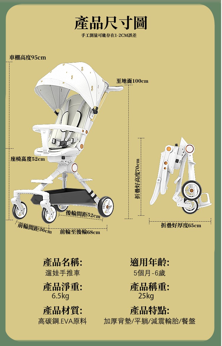 7分鐘前好康來襲 【遛娃好幫手】可坐可躺手推車 輕便可折疊 0-5歲都適用 - 【經典款】+遮陽帘+餐盤腳托+禮品