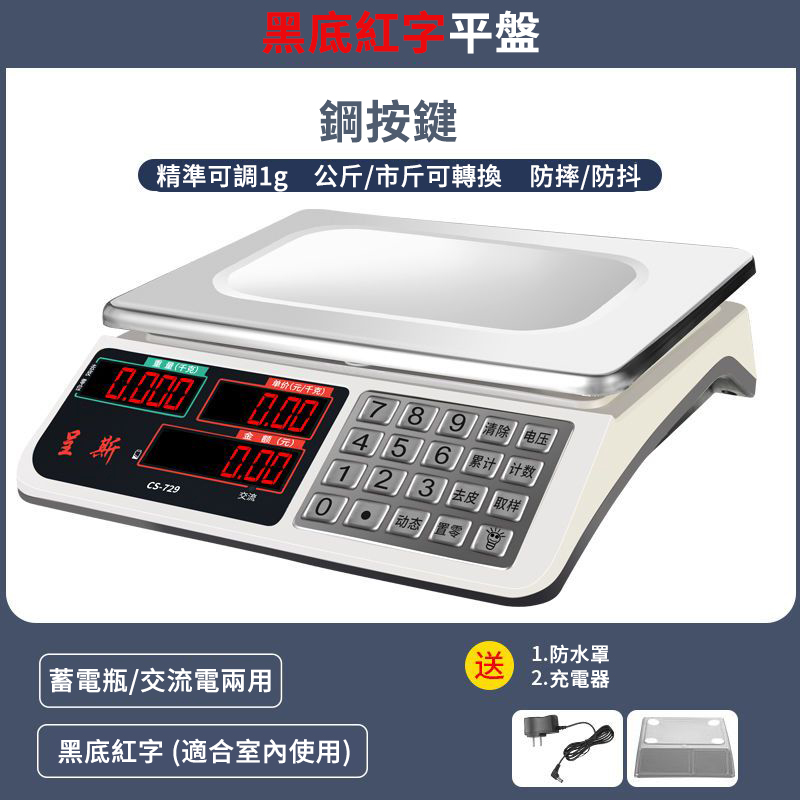 20分鐘前工廠聯合促銷!僅需千元【台灣省電待機王】德國進口商用電子秤 加厚加固超耐用 精準顯示為生意保駕護航 - 大電瓶【鋼按鍵】紅字平盤帶計數+防抖
