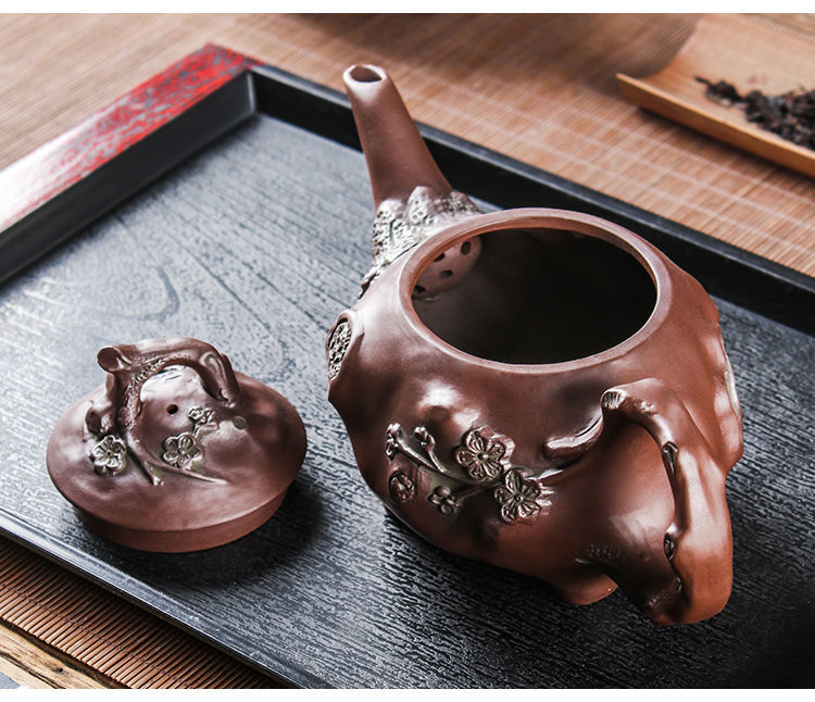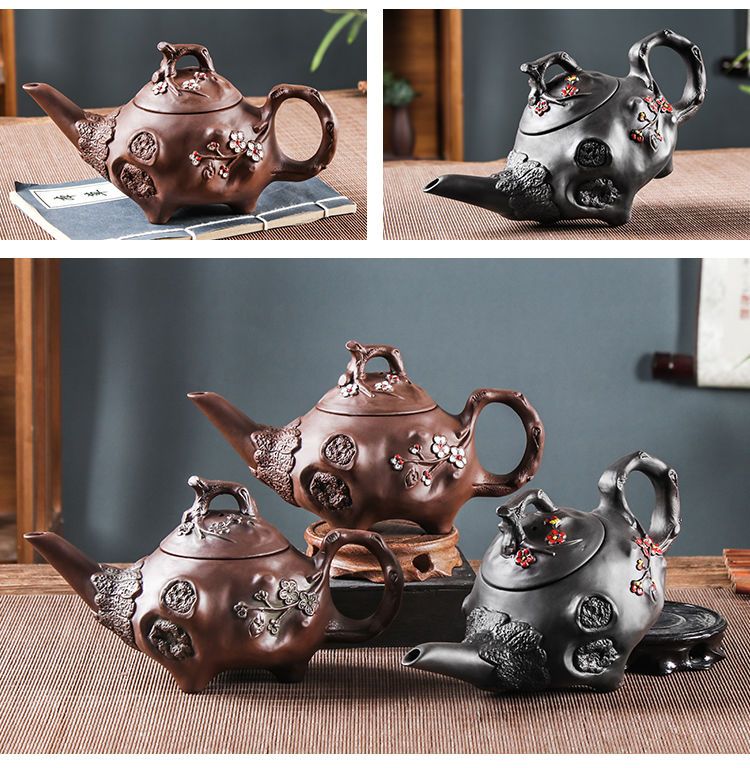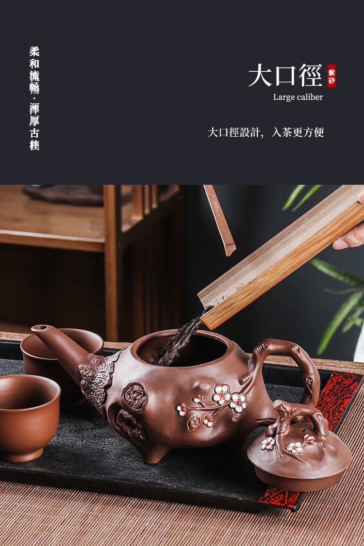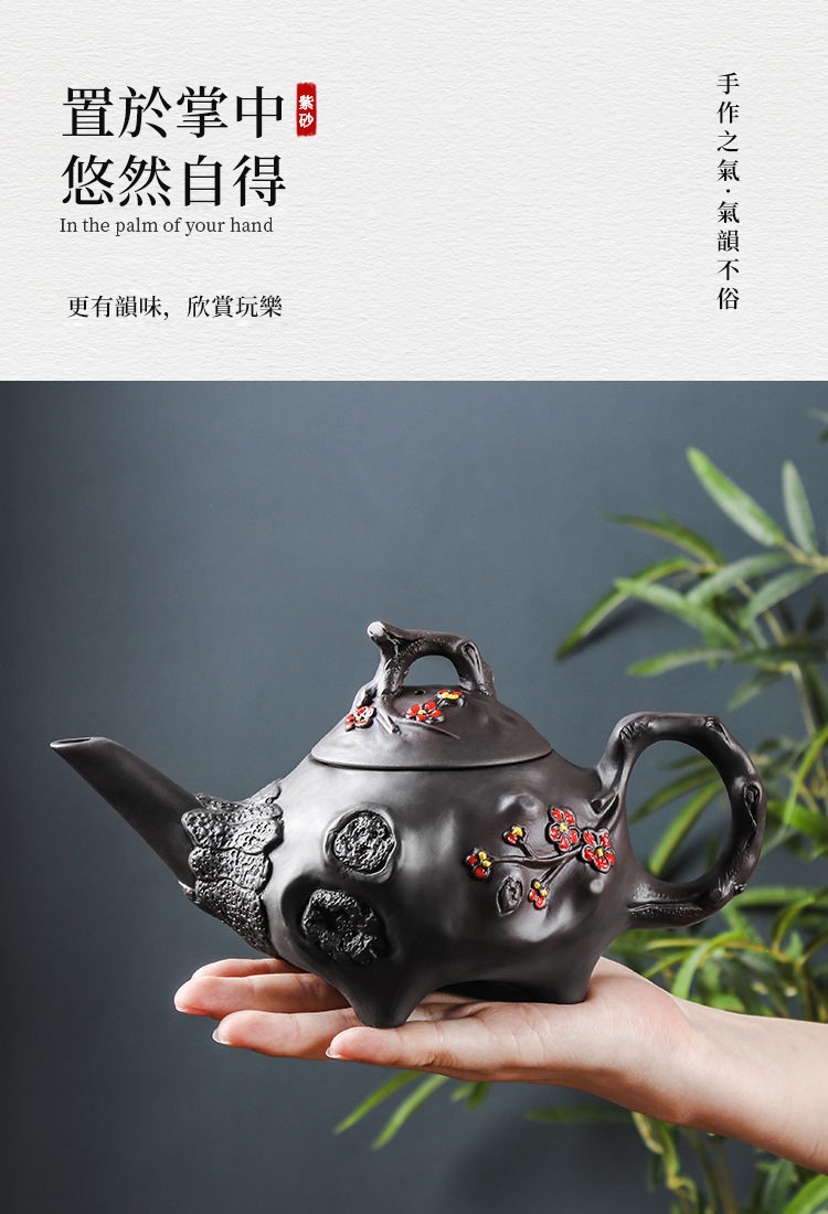 15分鐘前✩ 絕版收藏!正宗宜興紫砂朱泥長嘴供春壺 ❘ 黃金大容量500cc ❘ 純手工浮雕匠製,泡茶更香 - 紫砂朱泥長嘴供春壺500cc