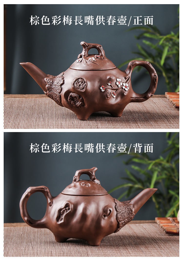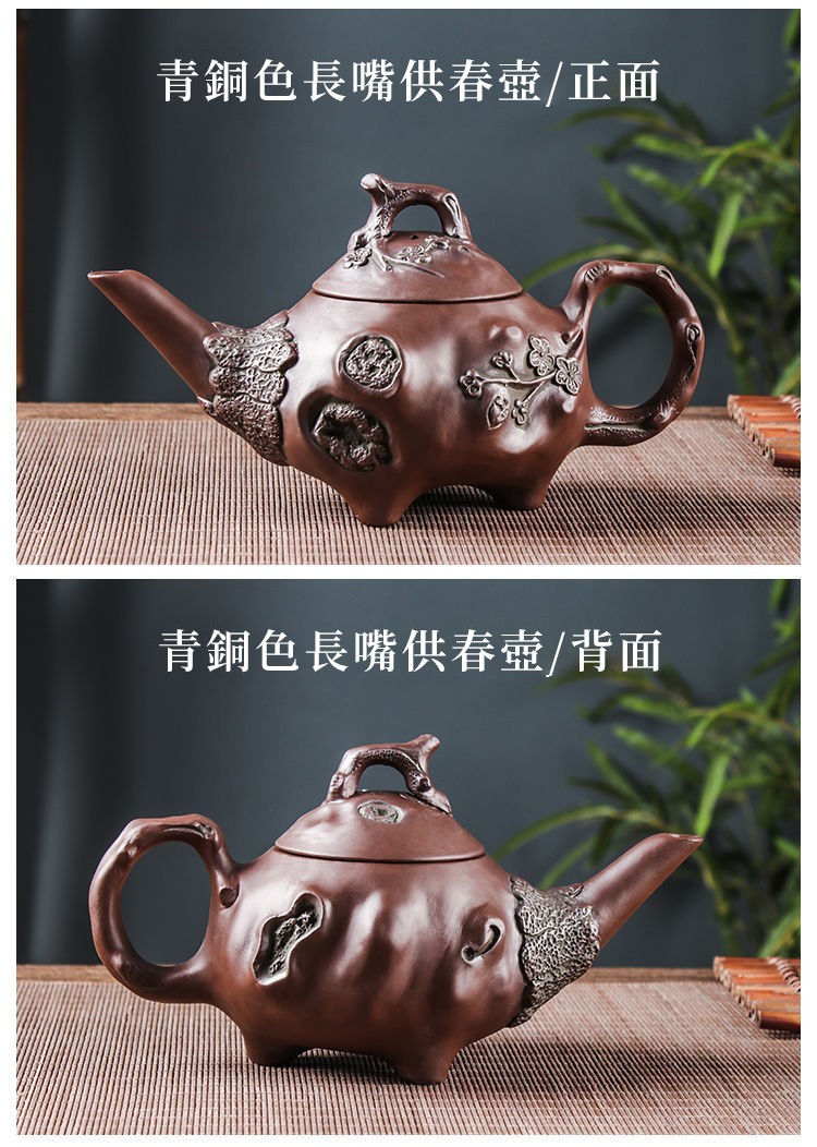 25分鐘前✩ 絕版收藏!正宗宜興紫砂朱泥長嘴供春壺 ❘ 黃金大容量500cc ❘ 純手工浮雕匠製,泡茶更香 - 紫砂朱泥長嘴供春壺500cc