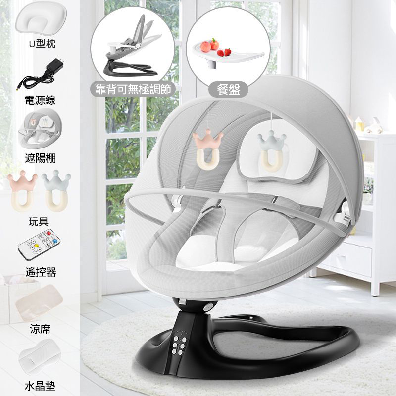 半小時前專業仿生設計,寶寶超享受,一不小心就睡著了!日本骨科醫師認可,解放媽媽雙手的電動搖椅(保固一年 不滿意包退換) - (豪華升級款)坐躺可調【藍牙+遙控】九件套大禮包+餐盤 NT$2980