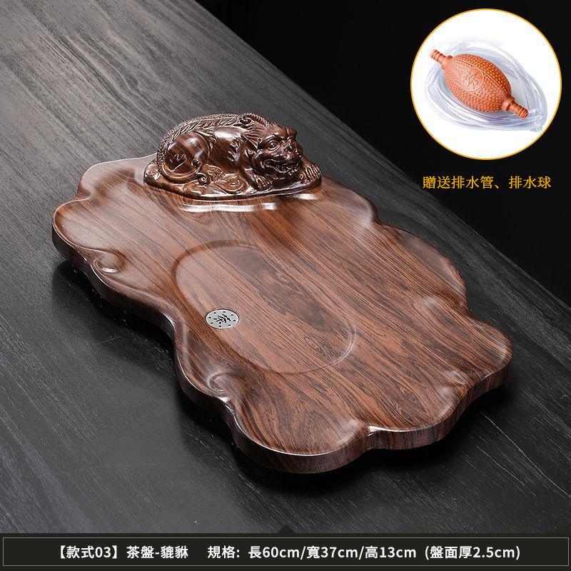 20分鐘前【天然實木】黑檀木雕刻功夫茶盤組|中式茶具套裝|實木泡茶盤 擺設收藏兩用 - 招財貔貅60*37cm【送排水管】