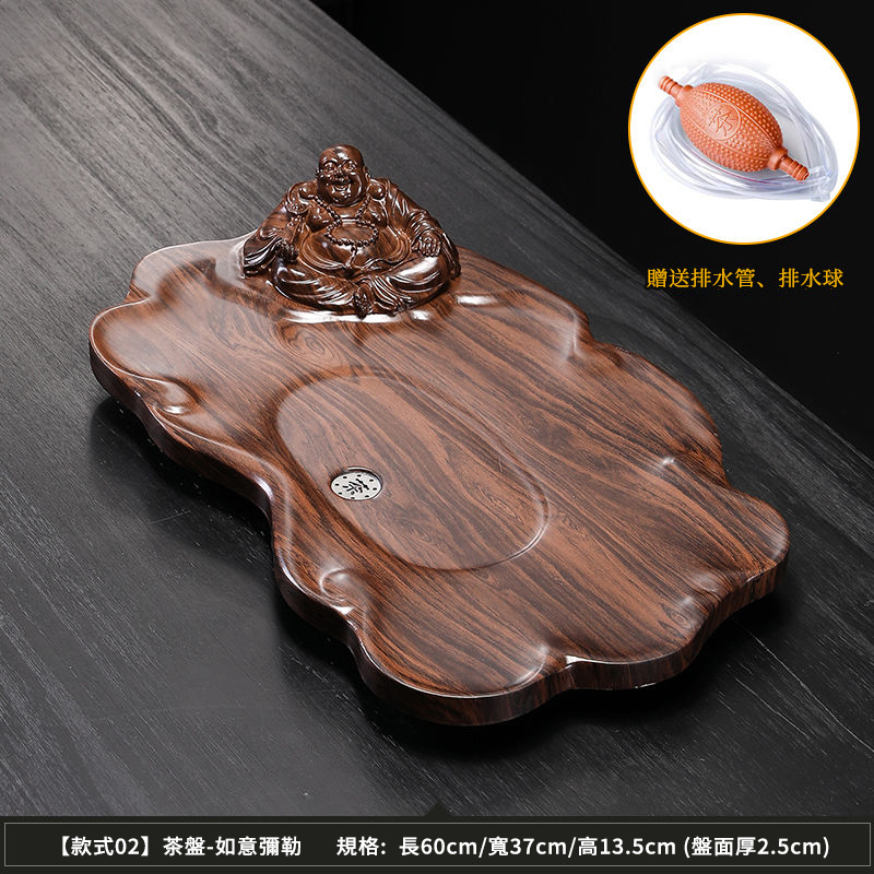 2分鐘前【天然實木】黑檀木雕刻功夫茶盤組|中式茶具套裝|實木泡茶盤 擺設收藏兩用 - 如意彌勒60*37cm【送排水管】