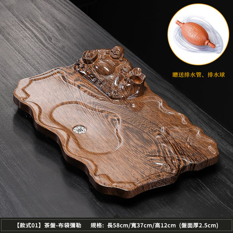 半小時前【天然實木】黑檀木雕刻功夫茶盤組|中式茶具套裝|實木泡茶盤 擺設收藏兩用 - 布袋彌勒58*37cm【送排水管】