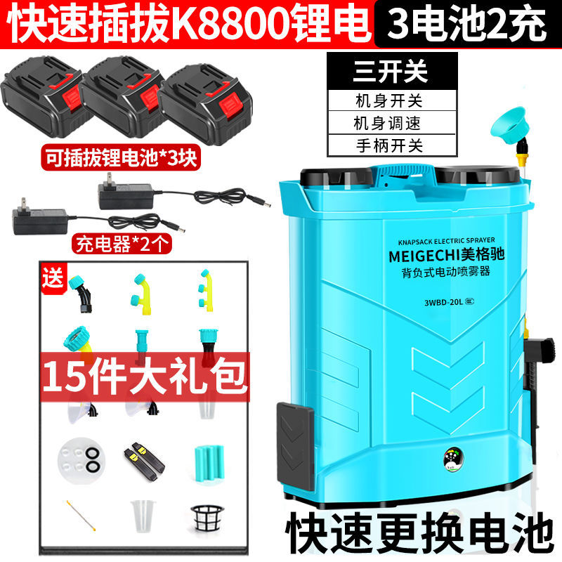 5分鐘前充電快不如換一塊,一天可打30畝【可換電池】農用高壓多功能鋰打藥機 - 20升K8800鋰電(可連續使用8小時)+3電2充