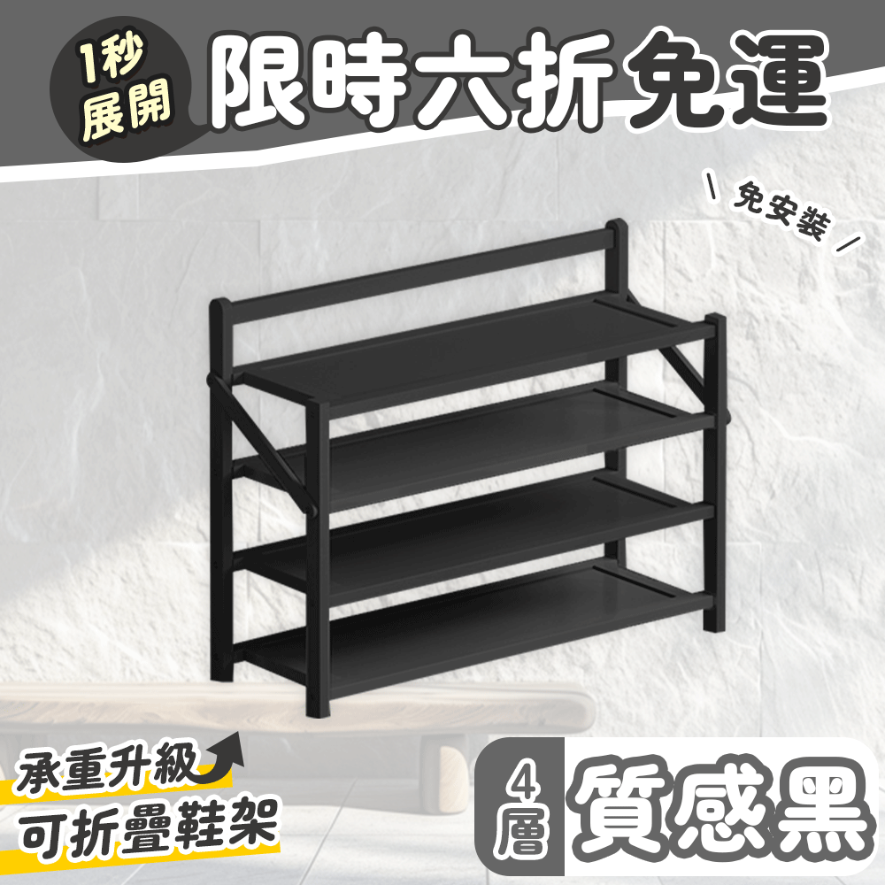 2分鐘前鞋控救星【免安裝折疊鞋架】一架多用節省空間 - 免安裝折疊鞋架【四層】