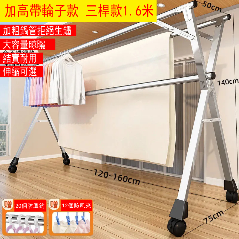 4分鐘前【下單即送20個防風掛鉤】不鏽鋼免安裝折疊家用伸縮式晾衣架 - 2025升級款加萬向輪1.6米【可伸縮-送20個防風鉤+12個防風夾】 NT$1790