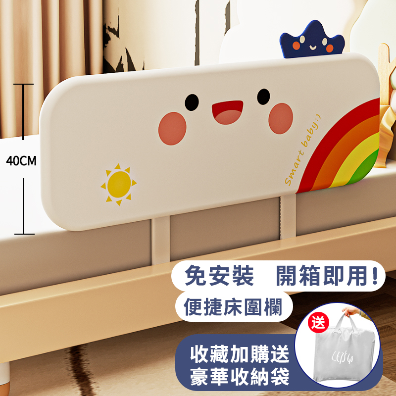 4分鐘前隨時隨地守護寶寶睡眠安全!【多貝嬰】可折疊防摔防護欄,免安裝,打開即用,旅行出遊方便攜帶 - 1.5米-免安裝折疊款