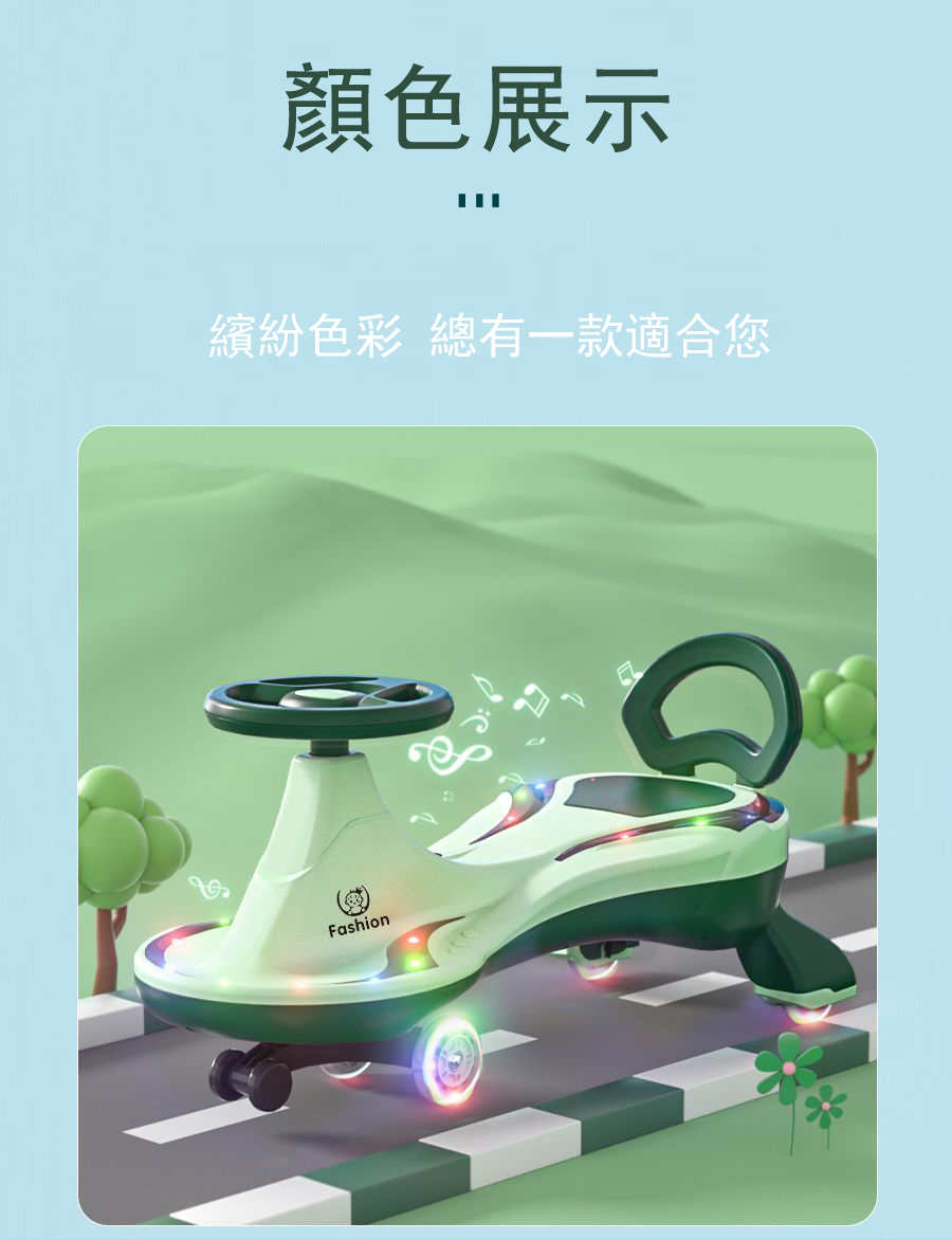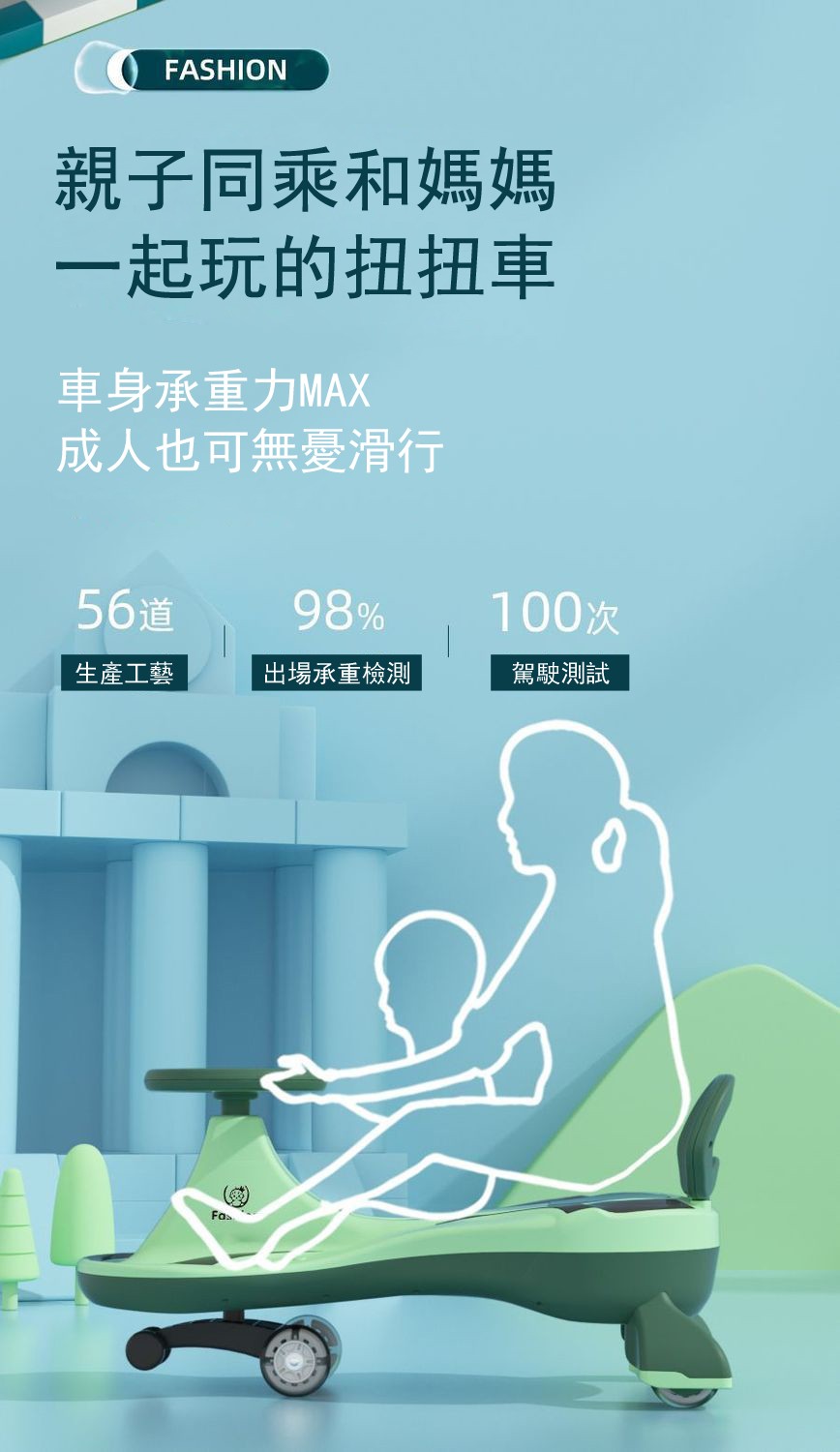 4分鐘前【日本東京熱銷】兒童扭扭車,寶寶大人都可坐 - 高配款 靜音閃光輪+音樂燈光 NT$1750