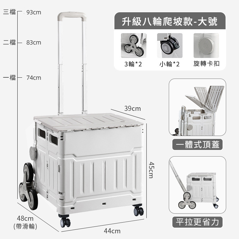 20分鐘前【折疊購物車】買菜購物免提重,爬樓搬運超省力!大容量好收納,露營野餐隨拉隨走,居家外出都好用! - 【八輪爬坡款(大號)】 加厚帶蓋 灰色 NT$2390