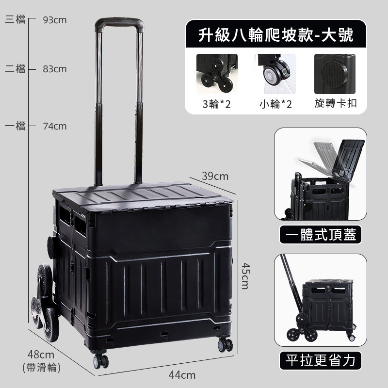 7分鐘前【折疊購物車】買菜購物免提重,爬樓搬運超省力!大容量好收納,露營野餐隨拉隨走,居家外出都好用! - 【八輪爬坡款(大號)】 加厚帶蓋 黑色 NT$2390