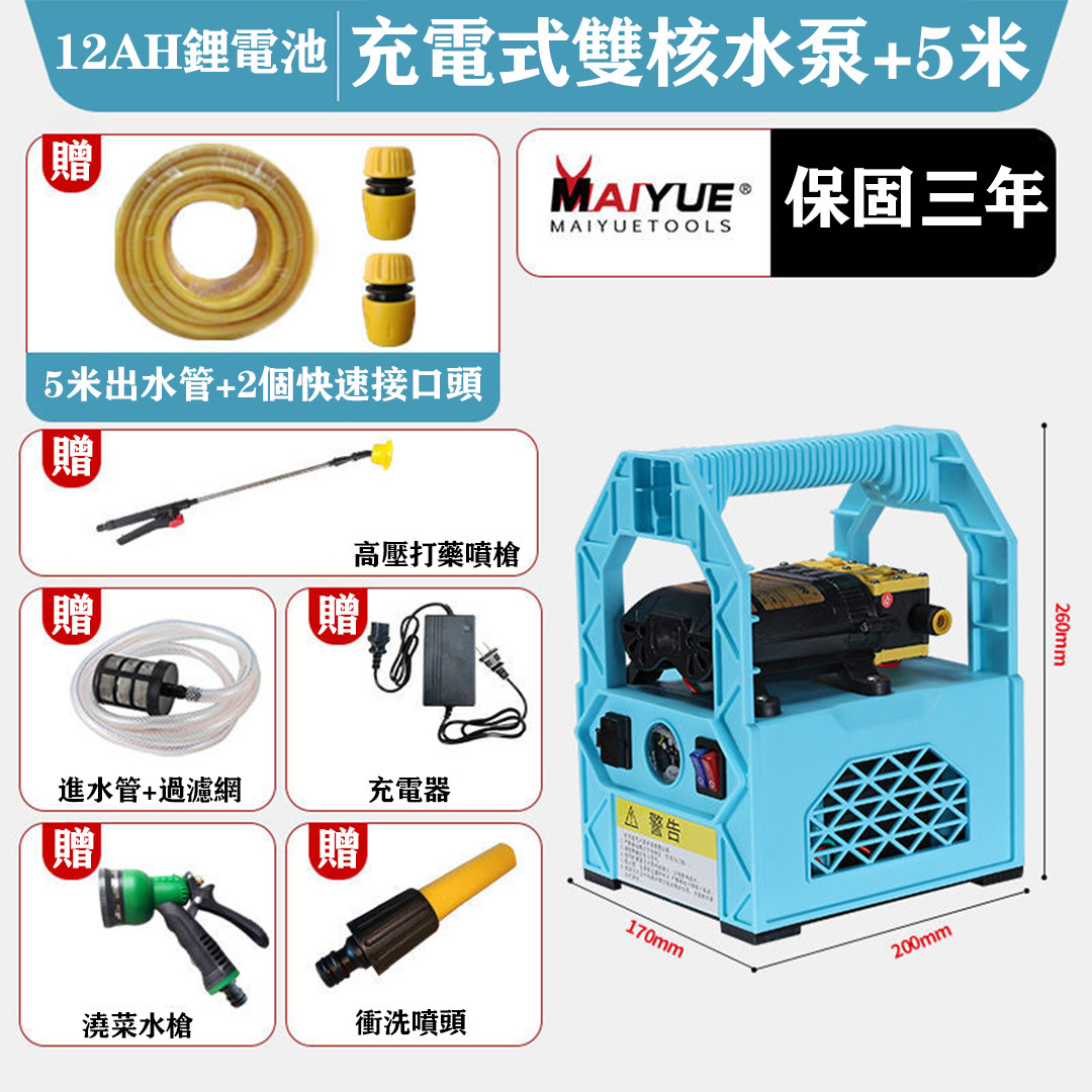 5分鐘前全台首推,好評爆滿!德國MAIYUE鋰電充電式抽水泵,澆菜/打藥/洗車/灌溉,輕鬆都能搞定‼️ - 12A鋰電雙核水泵[使用時長1小時](贈5米水管)